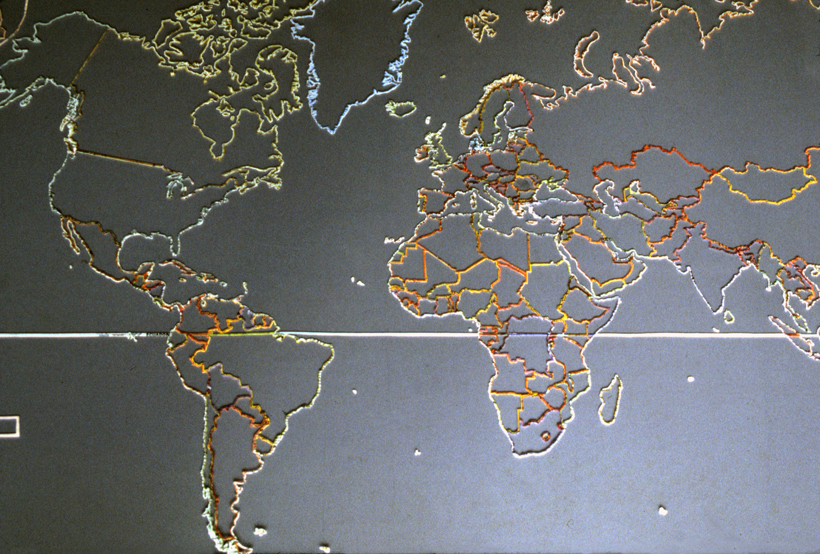 I created a map of the country for an Elgaland/Vargaland-focused exhibition at Thomas Nordanstad gallery in New York in 1997, which visualizes the E/V territories that appear on a conventional map, including all the borders between countries and also the equator.