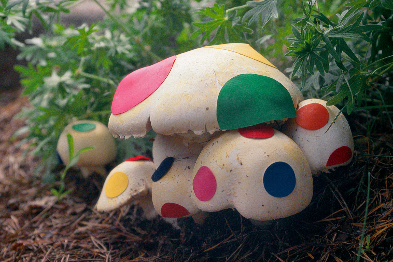 My maternal grandfather Lale’s toolshed in Finland was a meticulously well-organized wunderkammer of hardware and salvage. Once, after his death, I found a pristine bicycle tire patching kit there, which I used to “fix” a torn mushroom in the woods nearby, and I photographed the results. It’s also an homage of sorts to him, as he was a master at repairing broken objects, and we live with many relics of his attention to and love of mending.