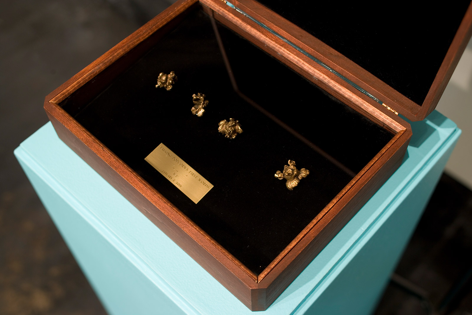 Talking Popcorn's First Words, 2001. Bronze popcorn kernels in velvet-lined wooden box.